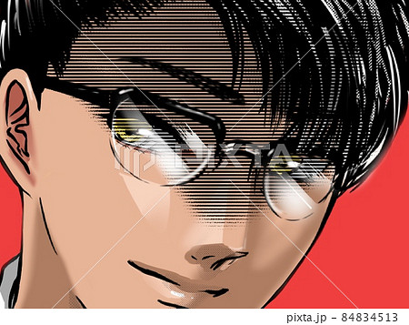 漫画イケメンメガネ詐欺師悪巧みしてほくそ笑むイラストのイラスト素材